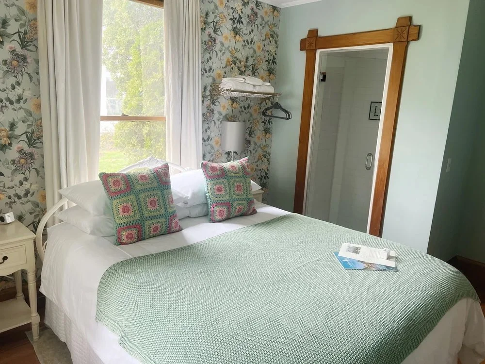 The floral prints of green, blue, yellow, and pink give this guest room a whimsical ambiance with classic Victorian era charm. It is supplied with luxurious Comphy linens and our own LimeRock Inn natural and organic bath products.