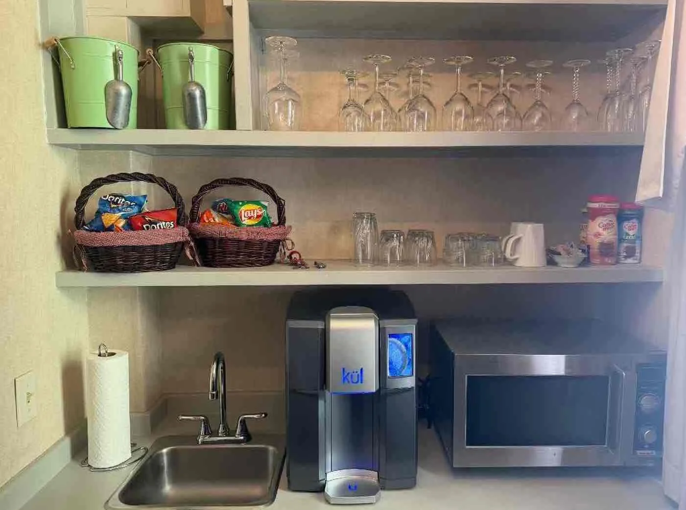 Enjoy complementary coffee, tea, soft drinks, and filtered water from the guest pantry, as well as snacks and occasional baked goods. Feel free to take a bucket of ice, borrow some wine glasses, or heat your left-overs in the microwave.